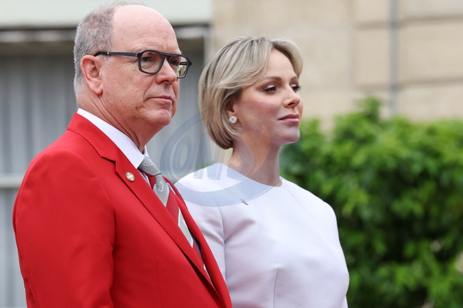 Le prince Albert II de Monaco et la princesse Charlène de Monaco - Emmanuel Macron, Président de la République Française, et la Première dame Brigitte Macron, accueillent les chefs d'Etat et de gouvernement présents à Paris pour la cérémonie d'ouverture des Jeux Olympiques de Paris 2024 (JO). Cette réception sera l'occasion pour la France de délivrer un message de paix et de tolérance alors que 10500 athlètes du monde entier seront réunis pour participer au plus grand événement sportif international. Paris, le 26 juillet 2024. © Stéphane Lemouton / Bestimage Emmanuel Macron, President of the French Republic, and the First Lady Brigitte Maron, welcome the heads of state and government present in Paris for the opening ceremony of the Paris 2024 Olympic Games (Olympics). This reception will be an opportunity for France to deliver a message of peace and tolerance as 10,500 athletes from around the world gather to participate in the largest international sporting event. Paris, July 26th, 2024. © Stéphane Lemouton / Bestimage