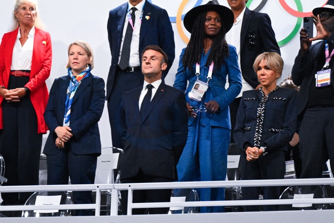 Cérémonie d'ouverture des Jeux Olympique (JO) de Paris 2024 le 26 juillet 2024 - Emmanuel Macron ( French president ) and Brigitte Macron ( wife of the French president ) attend the Opening Ceremony of the 2024 Olympics Games on July 26, 2024 in Paris, France. ( Photo by federico pestellini / DPPI / Panoramic ) -