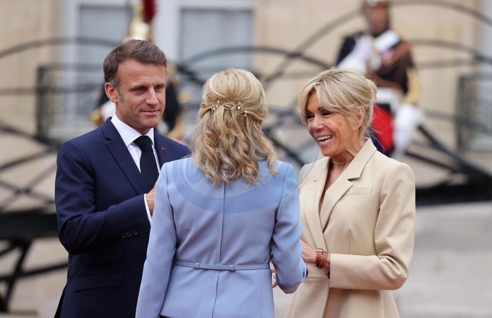 Emmanuel et Brigitte Macron accueillent les chefs d'Etat et de gouvernement présents pour la cérémonie d'ouverture des Jeux Olympiques de Paris 2024 (JO), au palais de l'Elysée