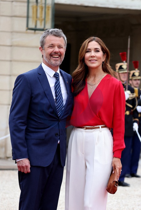 Le Roi Frederik X de Danemark et la Reine Mary - Emmanuel Macron, Président de la République Française, et la Première dame Brigitte Macron, accueillent les chefs d'Etat et de gouvernement présents à Paris pour la cérémonie d'ouverture des Jeux Olympiques de Paris 2024 (JO). Cette réception sera l'occasion pour la France de délivrer un message de paix et de tolérance alors que 10500 athlètes du monde entier seront réunis pour participer au plus grand événement sportif international. Paris, le 26 juillet 2024. © Dominique Jacovides - Pierre Perusseau / Bestimage Emmanuel Macron, President of the French Republic, and the First Lady Brigitte Maron, welcome the heads of state and government present in Paris for the opening ceremony of the Paris 2024 Olympic Games (Olympics). This reception will be an opportunity for France to deliver a message of peace and tolerance as 10,500 athletes from around the world gather to participate in the largest international sporting event. Paris, July 26th, 2024.