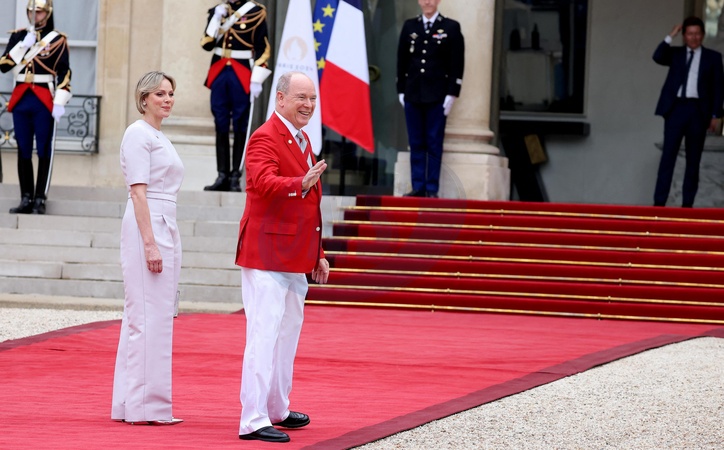 Albert II de Monaco, Charlene de Monaco - Emmanuel Macron, Président de la République Française, et la Première dame Brigitte Macron, accueillent les chefs d'Etat et de gouvernement présents à Paris pour la cérémonie d'ouverture des Jeux Olympiques de Paris 2024 (JO). Cette réception sera l'occasion pour la France de délivrer un message de paix et de tolérance alors que 10500 athlètes du monde entier seront réunis pour participer au plus grand événement sportif international. Paris, le 26 juillet 2024. © Dominique Jacovides - Pierre Perusseau / Bestimage Emmanuel Macron, President of the French Republic, and the First Lady Brigitte Maron, welcome the heads of state and government present in Paris for the opening ceremony of the Paris 2024 Olympic Games (Olympics). This reception will be an opportunity for France to deliver a message of peace and tolerance as 10,500 athletes from around the world gather to participate in the largest international sporting event. Paris, July 26th, 2024.