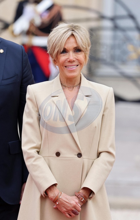 Brigitte Macron - Emmanuel Macron, Président de la République Française, et la Première dame Brigitte Macron, accueillent les chefs d'Etat et de gouvernement présents à Paris pour la cérémonie d'ouverture des Jeux Olympiques de Paris 2024 (JO). Cette réception sera l'occasion pour la France de délivrer un message de paix et de tolérance alors que 10500 athlètes du monde entier seront réunis pour participer au plus grand événement sportif international. Paris, le 26 juillet 2024. © Dominique Jacovides - Pierre Perusseau / Bestimage Emmanuel Macron, President of the French Republic, and the First Lady Brigitte Maron, welcome the heads of state and government present in Paris for the opening ceremony of the Paris 2024 Olympic Games (Olympics). This reception will be an opportunity for France to deliver a message of peace and tolerance as 10,500 athletes from around the world gather to participate in the largest international sporting event. Paris, July 26th, 2024.