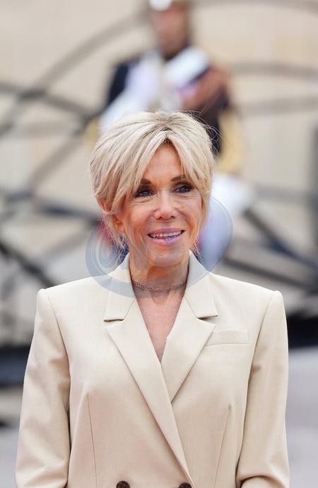 Brigitte Macron - Emmanuel Macron, Président de la République Française, et la Première dame Brigitte Macron, accueillent les chefs d'Etat et de gouvernement présents à Paris pour la cérémonie d'ouverture des Jeux Olympiques de Paris 2024 (JO). Cette réception sera l'occasion pour la France de délivrer un message de paix et de tolérance alors que 10500 athlètes du monde entier seront réunis pour participer au plus grand événement sportif international. Paris, le 26 juillet 2024. © Dominique Jacovides - Pierre Perusseau / Bestimage Emmanuel Macron, President of the French Republic, and the First Lady Brigitte Maron, welcome the heads of state and government present in Paris for the opening ceremony of the Paris 2024 Olympic Games (Olympics). This reception will be an opportunity for France to deliver a message of peace and tolerance as 10,500 athletes from around the world gather to participate in the largest international sporting event. Paris, July 26th, 2024.
