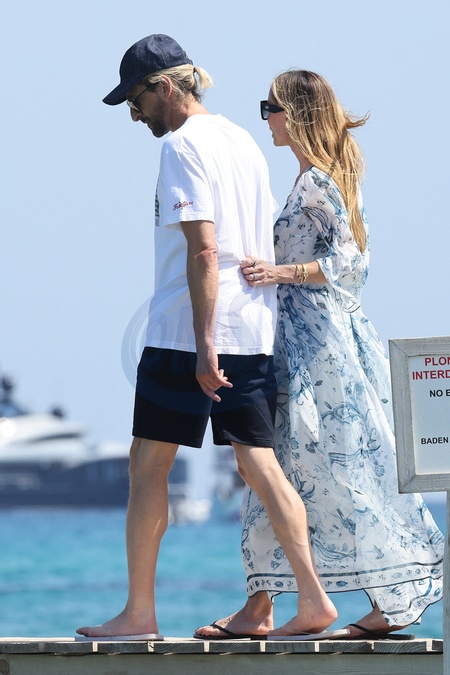 Adrien Brody et sa compagne Georgina Chapman s'embrassent en arrivant au Club 55 à Saint-Tropez le 27 juillet 2024 Adrien Brody and his partner Georgina Chapman kiss upon arriving at Club 55 in Saint-Tropez on July 27, 2024