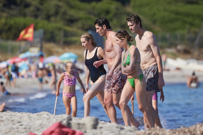 Ashley Benson, jej mąż Brandon Davis, Emma Roberts i jej narzeczony Cody John bawią się jak duże dzieci na plaży podczas wakacji w Zatoce Saint-Tropez
