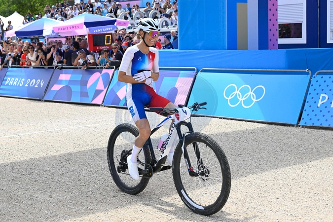 Pauline Ferrand-Prévot décroche la médaille d'or en VTT cross-country lors des Jeux Olympiques 2024 (JO 2024) à Élancourt dans les Yvelines