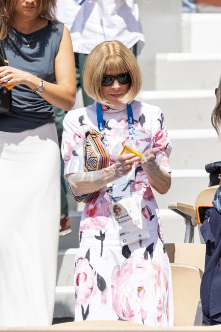 Anna Wintour uczestniczy w zawodach tenisa kobiecego podczas Igrzysk Olimpijskich w Paryżu w 2024 r. (OG) na stadionie Roland Garros