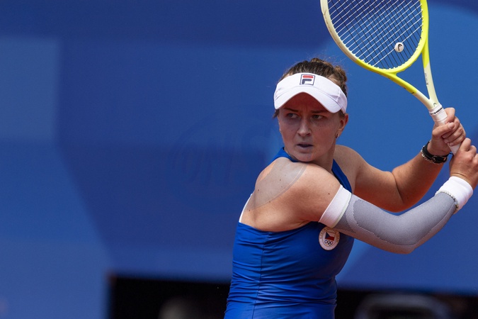 Barbora Krejcikova of Czechia during the women's singles first round tennis match on Court Philippe-Chatrier at the Roland-Garros Stadium during the Paris 2024 Olympics Games on July 28, 2024 in Paris, France. © Jacovides-Perusseau/Bestimage