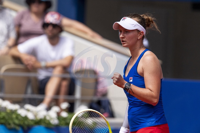 Barbora Krejcikova of Czechia during the women's singles first round tennis match on Court Philippe-Chatrier at the Roland-Garros Stadium during the Paris 2024 Olympics Games on July 28, 2024 in Paris, France. © Jacovides-Perusseau/Bestimage