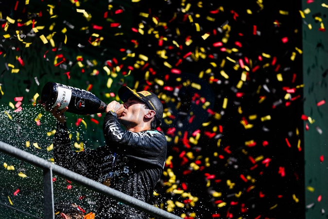 George Russell remporte le grand prix de Belgique de Formule 1 (F1) à Spa-Francorchamps - RUSSELL George (gbr), Mercedes AMG F1 Team W15, portrait podium during the Formula 1 Rolex Belgian Grand Prix 2024, 14th round of the 2024 Formula One World Championship from July 26 to 28, 2024 on the Circuit de Spa-Francorchamps, in Stavelot, Belgium -