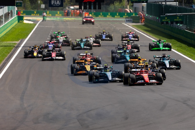 George Russell remporte le grand prix de Belgique de Formule 1 (F1) à Spa-Francorchamps - Start 16 LECLERC Charles (mco), Scuderia Ferrari SF-24, action 44 HAMILTON Lewis (gbr), Mercedes AMG F1 Team W15, action during the Formula 1 Rolex Belgian Grand Prix 2024, 14th round of the 2024 Formula One World Championship from July 26 to 28, 2024 on the Circuit de Spa-Francorchamps, in Stavelot, Belgium -