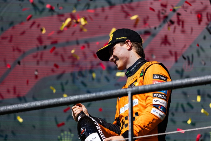 George Russell remporte le grand prix de Belgique de Formule 1 (F1) à Spa-Francorchamps - PIASTRI Oscar (aus), McLaren F1 Team MCL38, portrait podium during the Formula 1 Rolex Belgian Grand Prix 2024, 14th round of the 2024 Formula One World Championship from July 26 to 28, 2024 on the Circuit de Spa-Francorchamps, in Stavelot, Belgium -
