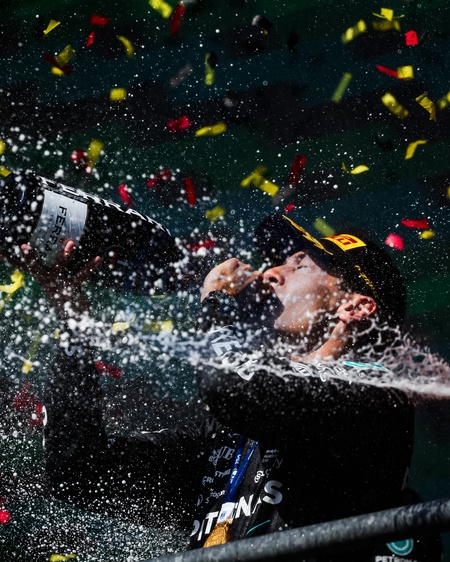 DPPI - George Russell remporte le grand prix de Belgique de Formule 1 (F1) à Spa-Francorchamps - RUSSELL George (gbr), Mercedes AMG F1 Team W15, celebrating the race win during the Formula 1 Rolex Belgian Grand Prix 2024, 14th round of the 2024 Formula One World Championship from July 26 to 28, 2024 on the Circuit de Spa-Francorchamps, in Stavelot, Belgium -