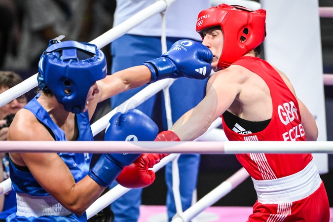 ECCLES Rosie of Great Britain and RYGIELSKA Aneta of Poland during the Boxing, WOMEN'S 66KG - PRELIMINARIES, Olympic Games Paris 2024 on 28 July 2024 at North Paris Arena in Villepinte, France. © Matthieu Mirville / DPPI Media / Panoramic / Bestimage