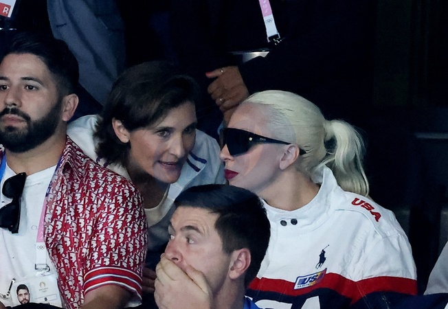 Amélie Oudéa-Castéra et Lady Gaga - Lady Gaga et son fiancé Michael Polansky assistent à la victoire de Léon Marchand sur 400 m 4 nage lors des Jeux Olympiques de Paris 2024 (JO) à Paris La Defense Arena à Nanterre le 28 juillet 2024. © Dominique Jacovides-Pierre Perusseau/Bestimage Lady Gaga and her fiancé Michael Polansky attend Léon Marchand's victory in the 400m medley during the Paris 2024 Olympic Games (Olympics) at Paris La Defense Arena in Nanterre on July 28, 2024.