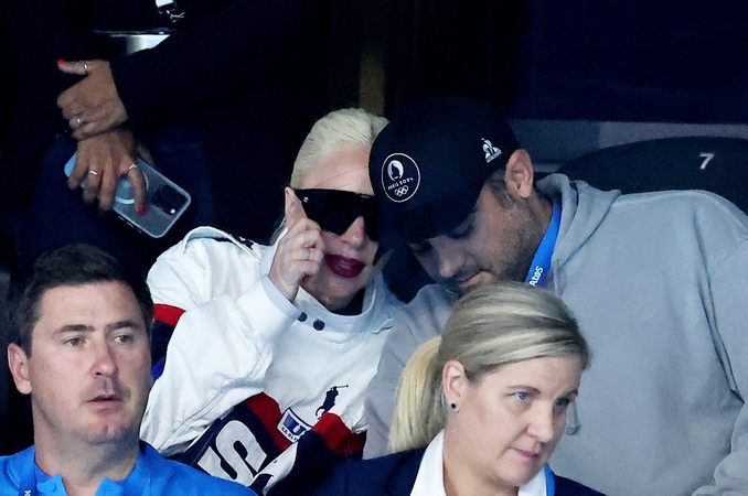 Lady Gaga i jej narzeczony Michael Polansky biorą udział w zwycięstwie Léona Marchanda w biegu na 400 m stylem zmiennym podczas Igrzysk Olimpijskich w Paryżu w 2024 r. (OG) w Paris La Defense Arena w Nanterre