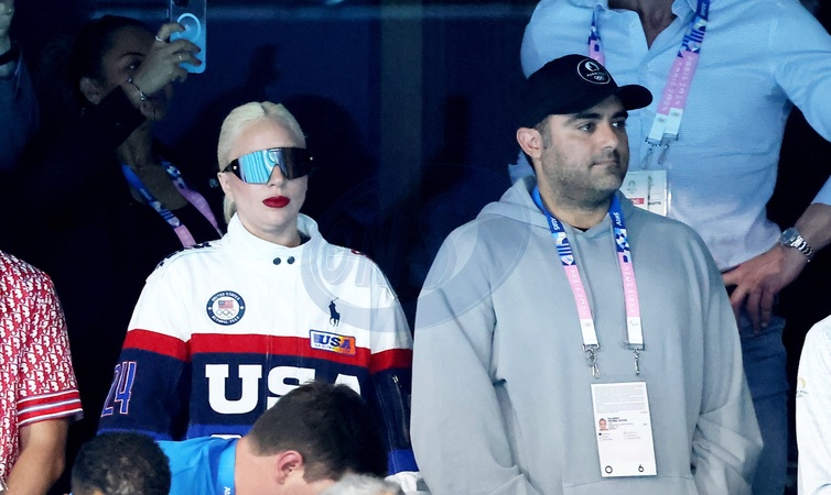Lady Gaga et son fiancé Michael Polansky assistent à la victoire de Léon Marchand sur 400 m 4 nage lors des Jeux Olympiques de Paris 2024 (JO) à Paris La Defense Arena à Nanterre