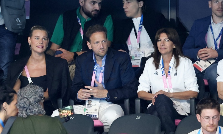 Brent John Nowicki, Anne Hidalgo - Célébrités assistent à la victoire de Léon Marchand qui devient champion Olympique sur 400 m 4 nages lors des Jeux Olympiques de Paris 2024 (JO) à Paris La Defense Arena à Nanterre le 28 juillet 2024. © Dominique Jacovides-Pierre Perusseau/Bestimage Celebrities attend the victory of Léon Marchand who becomes Olympic champion in the 400m medley during the Paris 2024 Olympic Games (Olympics) at Paris La Defense Arena in Nanterre on July 28, 2024