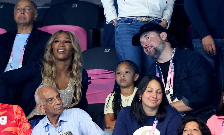 Merci de flouter le visage des enfants avant publication - Serena Williams, sa fille Olympia et son mari Alexis Ohanian - Célébrités assistent à la victoire de Léon Marchand qui devient champion Olympique sur 400 m 4 nages lors des Jeux Olympiques de Paris 2024 (JO) à Paris La Defense Arena à Nanterre le 28 juillet 2024. © Dominique Jacovides-Pierre Perusseau/Bestimage Celebrities attend the victory of Léon Marchand who becomes Olympic champion in the 400m medley during the Paris 2024 Olympic Games (Olympics) at Paris La Defense Arena in Nanterre on July 28, 2024