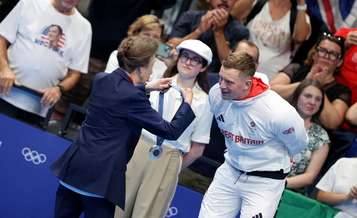 La Princesse Anne - Célébrités assistent à la victoire de Léon Marchand qui devient champion Olympique sur 400 m 4 nages lors des Jeux Olympiques de Paris 2024 (JO) à Paris La Defense Arena à Nanterre le 28 juillet 2024. © Dominique Jacovides-Pierre Perusseau/Bestimage Celebrities attend the victory of Léon Marchand who becomes Olympic champion in the 400m medley during the Paris 2024 Olympic Games (Olympics) at Paris La Defense Arena in Nanterre on July 28, 2024