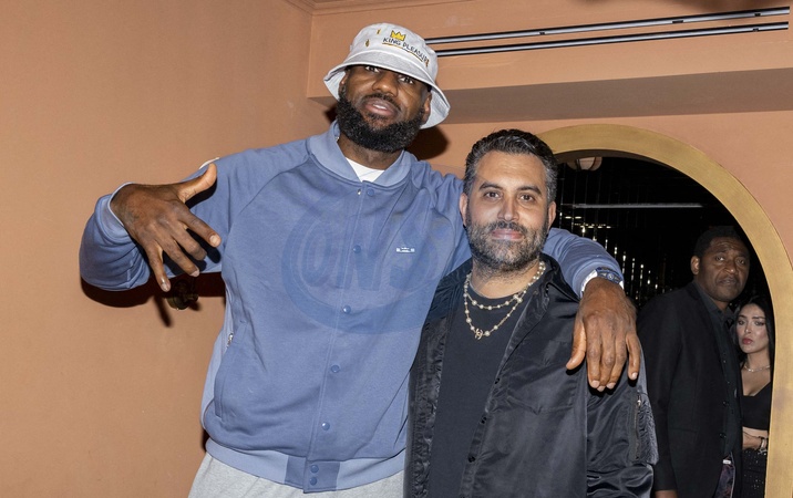 LeBron James et Mehdi Abdelhedi (propriétaire du restaurant Cesar) - Les Joueurs de basket-ball américain sont allés dîner au restaurant Siena lors des Jeux Olympiques de Paris 2024 (JO) à Paris le 28 juillet 2024. © Dominique Jacovides-Pierre Perusseau/Bestimage American basketball players dine at Siena Restaurant during the Paris 2024 Olympic Games (Olympics) in Paris on July 28, 2024.