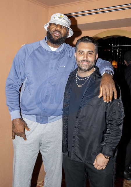 LeBron James et Mehdi Abdelhedi (propriétaire du restaurant Cesar) - Les Joueurs de basket-ball américain sont allés dîner au restaurant Siena lors des Jeux Olympiques de Paris 2024 (JO) à Paris le 28 juillet 2024. © Dominique Jacovides-Pierre Perusseau/Bestimage American basketball players dine at Siena Restaurant during the Paris 2024 Olympic Games (Olympics) in Paris on July 28, 2024.