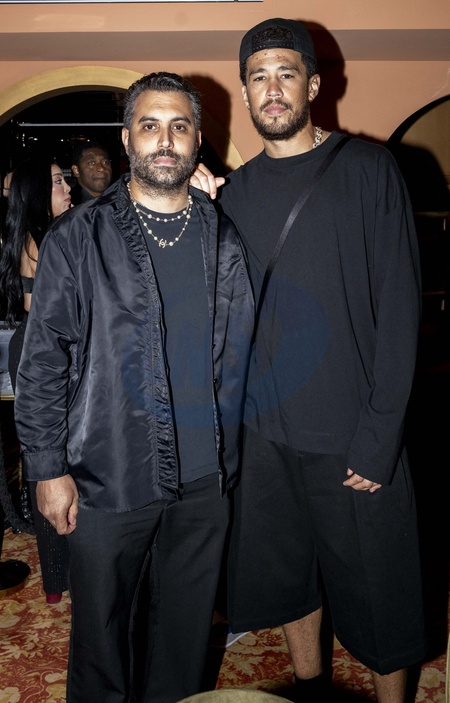 Devin Booker et Mehdi Abdelhedi (propriétaire du restaurant Cesar) - Les Joueurs de basket-ball américain sont allés dîner au restaurant Siena lors des Jeux Olympiques de Paris 2024 (JO) à Paris le 28 juillet 2024. © Dominique Jacovides-Pierre Perusseau/Bestimage American basketball players dine at Siena Restaurant during the Paris 2024 Olympic Games (Olympics) in Paris on July 28, 2024.