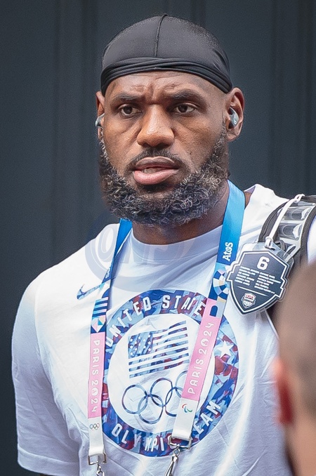 Exclusif - Lebron James et les membres de l'équipe américaine de basketball à la sortie de leur hôtel "L'Hermitage Gantois" à Lille, à l'occasion des Jeux Olympiques Paris 2024
