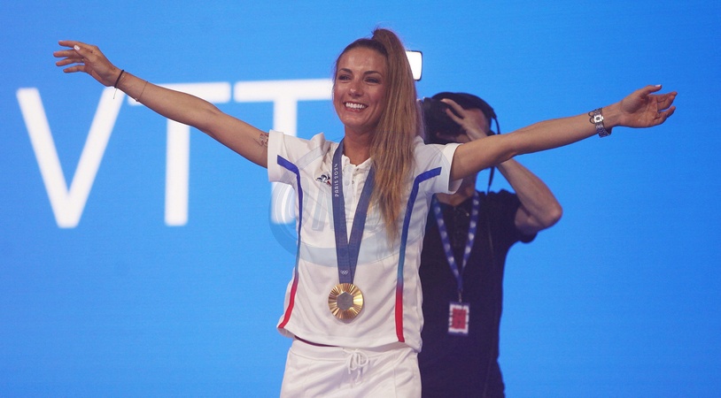 Pauline Ferrand-Prévot, złoty medal w kolarstwie górskim, w Club France podczas Igrzysk Olimpijskich Paryż 2024