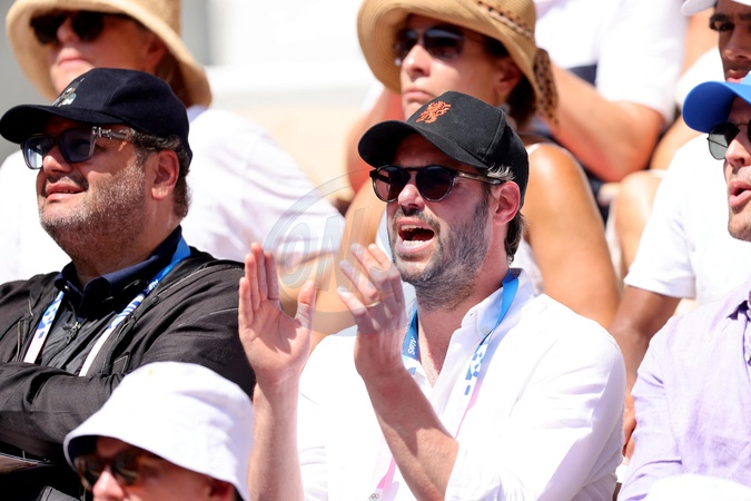 Célébrités en tribunes de l'épreuve de tennis opposant Novak Djokovic à Rafael Nadal lors des Jeux Olympiques de Paris 2024 (JO) à Roland Garros