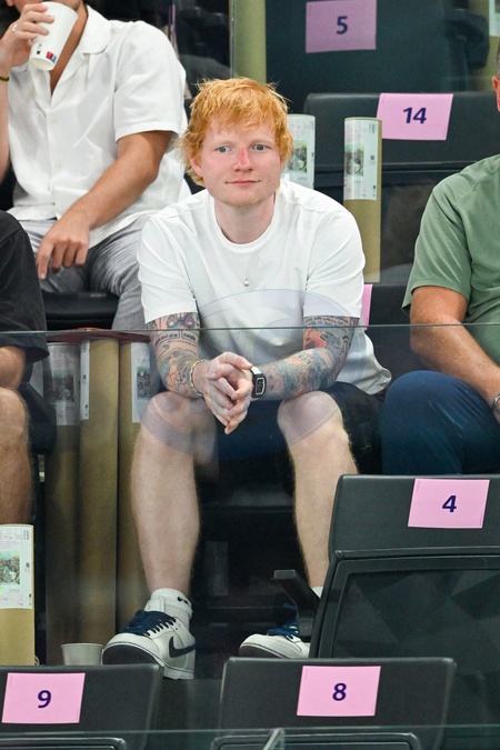 Ed Sheeran assiste aux épreuve de gymnastiques lors des Jeux Olympiques de Paris 2024 (JO) au Palais omnisports Bercy Arena, à Paris, France, le 28 juillet 2024. © Jacovides-Perusseau/Bestimage Ed Sheeran attends the gymnastics event during the Paris 2024 Olympic Games (Olympics) at Palais Omnisports Bercy Arena in Paris, France, July 28, 2024.