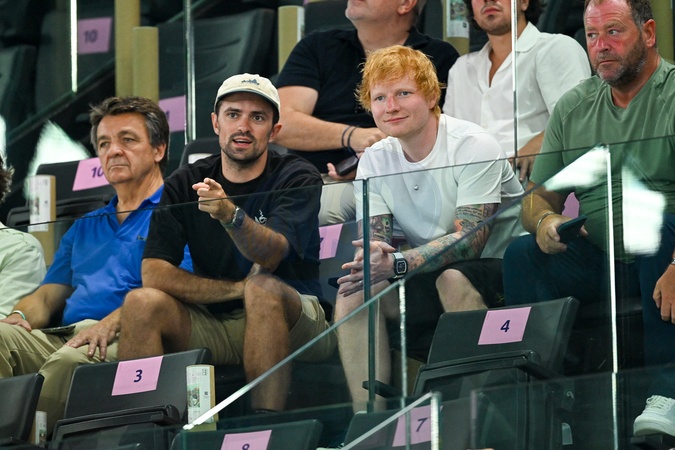 Ed Sheeran assiste aux épreuve de gymnastiques lors des Jeux Olympiques de Paris 2024 (JO) au Palais omnisports Bercy Arena