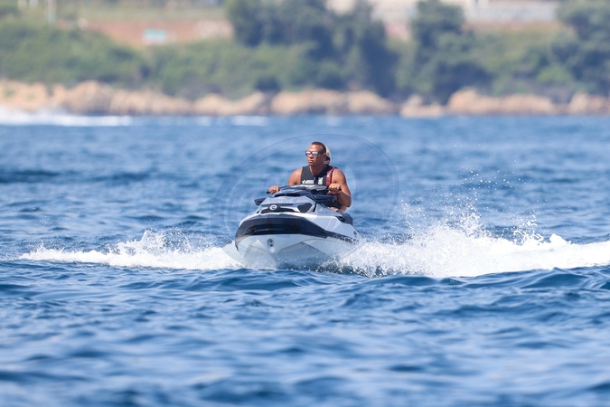 Exclusif - No web - Alex Rodriguez avec sa compagne Jaclyn Cordeiro et ses enfants sur un yacht près de Cannes le 28 juillet 2024. Au programme : séance jet ski et baignade. Exclusive - For Germany call for price - No web - Alex Rodriguez with his partner Jaclyn Cordeiro and his children on a yacht near Cannes on July 28, 2024. On the program: jet ski session and swimming.