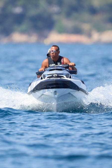 Exclusif - No web - Alex Rodriguez avec sa compagne Jaclyn Cordeiro et ses enfants sur un yacht près de Cannes le 28 juillet 2024. Au programme : séance jet ski et baignade. Exclusive - For Germany call for price - No web - Alex Rodriguez with his partner Jaclyn Cordeiro and his children on a yacht near Cannes on July 28, 2024. On the program: jet ski session and swimming.