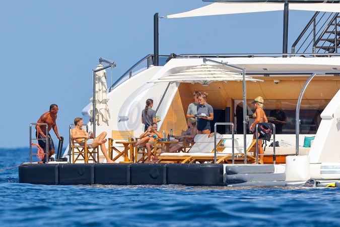 Exclusif - No web - Alex Rodriguez avec sa compagne Jaclyn Cordeiro et ses enfants sur un yacht près de Cannes le 28 juillet 2024. Au programme : séance jet ski et baignade. Exclusive - For Germany call for price - No web - Alex Rodriguez with his partner Jaclyn Cordeiro and his children on a yacht near Cannes on July 28, 2024. On the program: jet ski session and swimming.