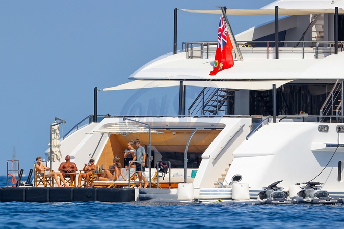 Exclusif - No web - Alex Rodriguez avec sa compagne Jaclyn Cordeiro et ses enfants sur un yacht près de Cannes le 28 juillet 2024. Au programme : séance jet ski et baignade. Exclusive - For Germany call for price - No web - Alex Rodriguez with his partner Jaclyn Cordeiro and his children on a yacht near Cannes on July 28, 2024. On the program: jet ski session and swimming.