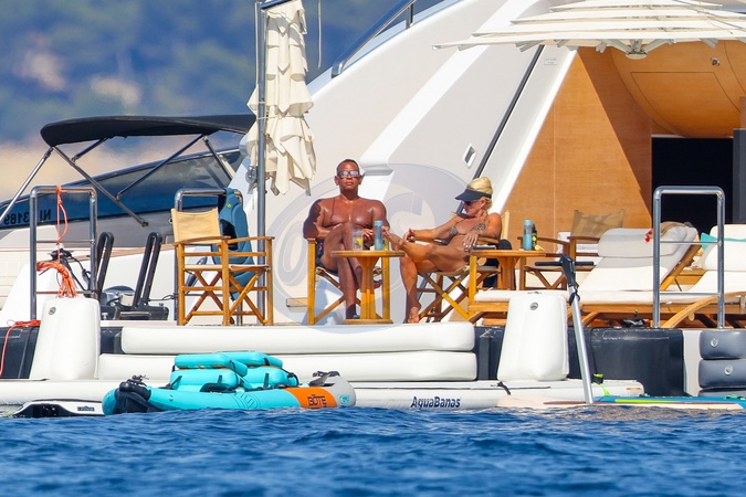 Exclusif - No web - Alex Rodriguez avec sa compagne Jaclyn Cordeiro et ses enfants sur un yacht près de Cannes le 28 juillet 2024. Au programme : séance jet ski et baignade. Exclusive - For Germany call for price - No web - Alex Rodriguez with his partner Jaclyn Cordeiro and his children on a yacht near Cannes on July 28, 2024. On the program: jet ski session and swimming.