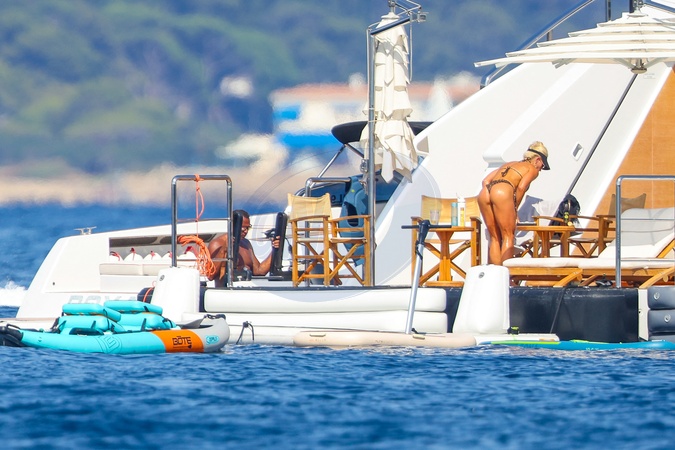 Exclusif - No web - Alex Rodriguez avec sa compagne Jaclyn Cordeiro et ses enfants sur un yacht près de Cannes le 28 juillet 2024. Au programme : séance jet ski et baignade. Exclusive - For Germany call for price - No web - Alex Rodriguez with his partner Jaclyn Cordeiro and his children on a yacht near Cannes on July 28, 2024. On the program: jet ski session and swimming.