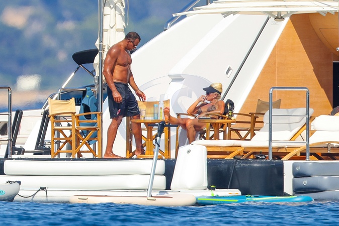 Exclusif - No web - Alex Rodriguez avec sa compagne Jaclyn Cordeiro et ses enfants sur un yacht près de Cannes le 28 juillet 2024. Au programme : séance jet ski et baignade. Exclusive - For Germany call for price - No web - Alex Rodriguez with his partner Jaclyn Cordeiro and his children on a yacht near Cannes on July 28, 2024. On the program: jet ski session and swimming.