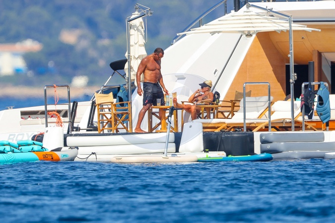 Exclusif - No web - Alex Rodriguez avec sa compagne Jaclyn Cordeiro et ses enfants sur un yacht près de Cannes le 28 juillet 2024. Au programme : séance jet ski et baignade. Exclusive - For Germany call for price - No web - Alex Rodriguez with his partner Jaclyn Cordeiro and his children on a yacht near Cannes on July 28, 2024. On the program: jet ski session and swimming.
