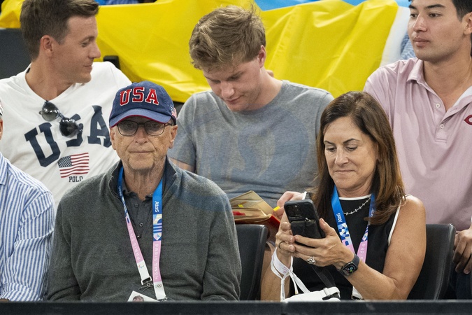 Bill Gate et sa compagne Paula Hurd en tribunes aux épreuves de gymnastiques lors des Jeux Olympiques de Paris 2024 (JO) au Palais omnisports Bercy Arena, à Paris, France, le 28 juillet 2024. © Jacovides-Perusseau/Bestimage Celebs attend the gymnastics event during the Paris 2024 Olympic Games (Olympics) at Palais Omnisports Bercy Arena in Paris, France, July 28, 2024.