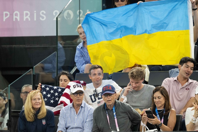 Bill Gate et sa compagne Paula Hurd en tribunes aux épreuves de gymnastiques lors des Jeux Olympiques de Paris 2024 (JO) au Palais omnisports Bercy Arena, à Paris, France, le 28 juillet 2024. © Jacovides-Perusseau/Bestimage Celebs attend the gymnastics event during the Paris 2024 Olympic Games (Olympics) at Palais Omnisports Bercy Arena in Paris, France, July 28, 2024.