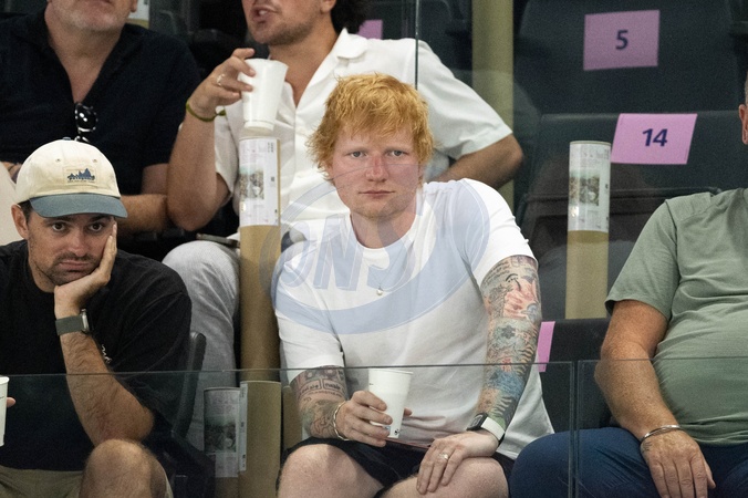 Ed Sheeran assiste aux épreuve de gymnastiques lors des Jeux Olympiques de Paris 2024 (JO) au Palais omnisports Bercy Arena, à Paris, France, le 28 juillet 2024. © Jacovides-Perusseau/Bestimage Ed Sheeran attends the gymnastics event during the Paris 2024 Olympic Games (Olympics) at Palais Omnisports Bercy Arena in Paris, France, July 28, 2024.