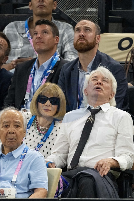 Anna Wintour en tribunes aux épreuves de gymnastiques lors des Jeux Olympiques de Paris 2024 (JO) au Palais omnisports Bercy Arena, à Paris, France, le 28 juillet 2024. © Jacovides-Perusseau/Bestimage Celebs attend the gymnastics event during the Paris 2024 Olympic Games (Olympics) at Palais Omnisports Bercy Arena in Paris, France, July 28, 2024.