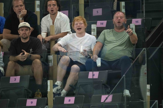Ed Sheeran assiste aux épreuve de gymnastiques lors des Jeux Olympiques de Paris 2024 (JO) au Palais omnisports Bercy Arena, à Paris, France, le 28 juillet 2024. © Jacovides-Perusseau/Bestimage Ed Sheeran attends the gymnastics event during the Paris 2024 Olympic Games (Olympics) at Palais Omnisports Bercy Arena in Paris, France, July 28, 2024.
