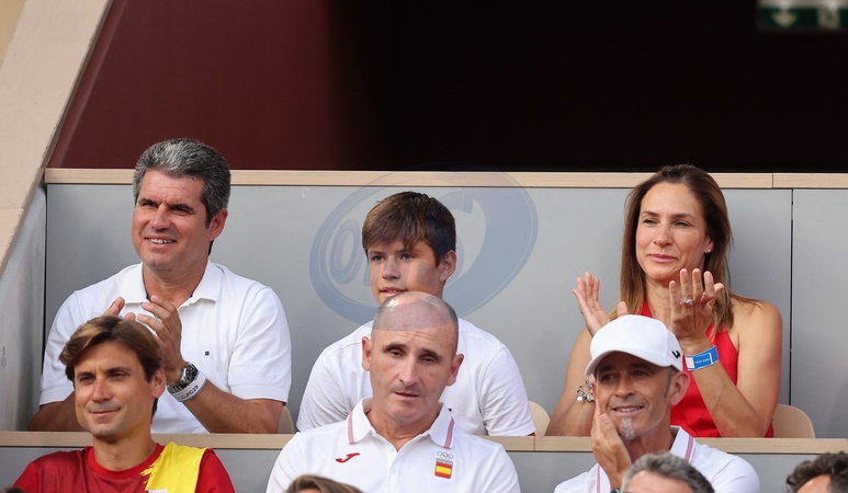 Carlos et Virginia Alcaraz (parents de Carlos Alcaraz) avec leur fils Jaime - People assistent à la victoire de Carlos Alcaraz face à Tallon Griekspoor 6-1, 7-6 (7/3) sur le Court Philippe-Chatrier de Roland-Garros à Paris lors des Jeux Olympiques de Paris2024 (JO) le 29 juillet 2024. © Jacovides-Perusseau/Bestimage People attend Carlos Alcaraz's victory over Tallon Griekspoor 6-1, 7-6 (7/3) on Court Philippe-Chatrier at Roland-Garros in Paris during the Paris2024 Olympic Games (Olympics) on July 29, 2024.