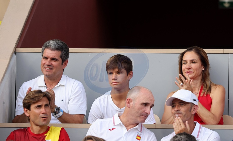 Carlos et Virginia Alcaraz (parents de Carlos Alcaraz) avec leur fils Jaime - People assistent à la victoire de Carlos Alcaraz face à Tallon Griekspoor 6-1, 7-6 (7/3) sur le Court Philippe-Chatrier de Roland-Garros à Paris lors des Jeux Olympiques de Paris2024 (JO) le 29 juillet 2024. © Jacovides-Perusseau/Bestimage People attend Carlos Alcaraz's victory over Tallon Griekspoor 6-1, 7-6 (7/3) on Court Philippe-Chatrier at Roland-Garros in Paris during the Paris2024 Olympic Games (Olympics) on July 29, 2024.