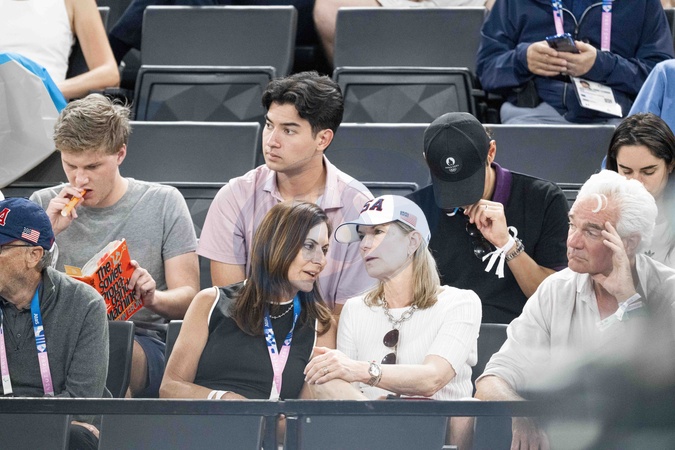 Célébrités assistent aux épreuves de gymnastiques lors des Jeux Olympiques de Paris 2024 (JO) au Palais omnisports Bercy Arena, à Paris