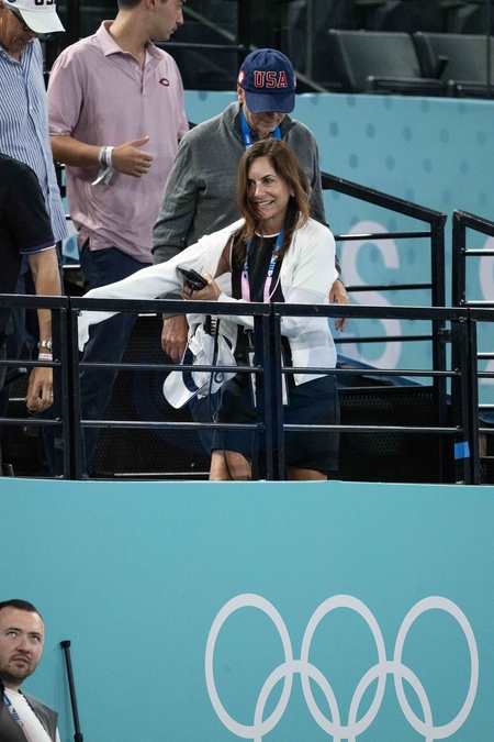 Bill Gates et son amie Paula Hurd - Célébrités assistent aux épreuves de gymnastiques lors des Jeux Olympiques de Paris 2024 (JO) au Palais omnisports Bercy Arena, à Paris le 29 juillet 2024. © Jacovides-Perusseau/Bestimage Celebrities attend the gymnastics events during the Paris 2024 Olympic Games (Olympics) at Palais Omnisports Bercy Arena in Paris on July 29, 2024.