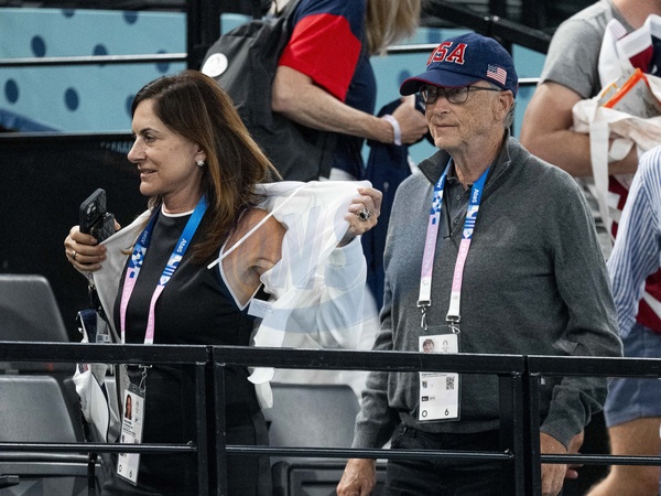 Bill Gates et son amie Paula Hurd - Célébrités assistent aux épreuves de gymnastiques lors des Jeux Olympiques de Paris 2024 (JO) au Palais omnisports Bercy Arena, à Paris le 29 juillet 2024. © Jacovides-Perusseau/Bestimage Celebrities attend the gymnastics events during the Paris 2024 Olympic Games (Olympics) at Palais Omnisports Bercy Arena in Paris on July 29, 2024.